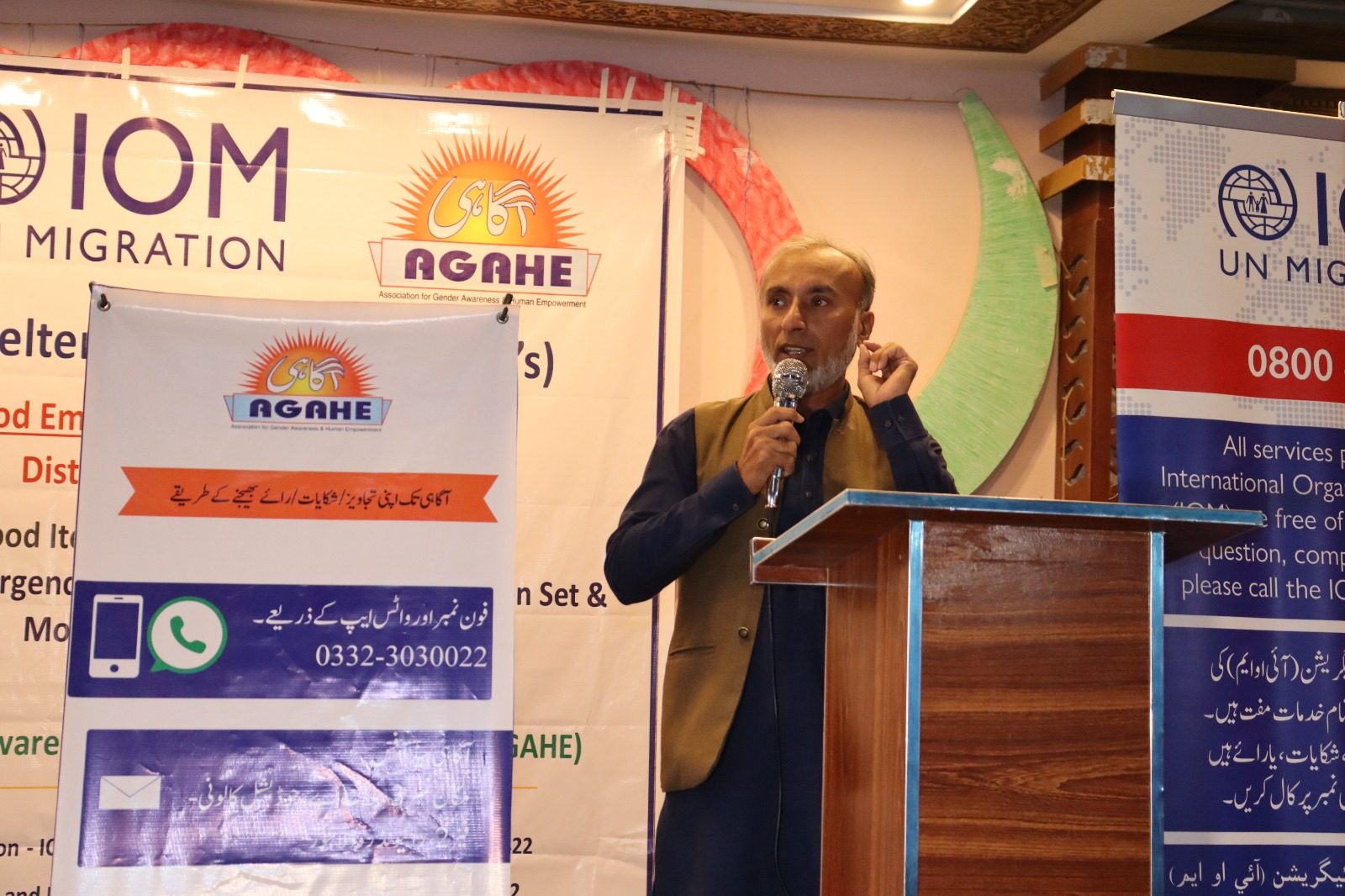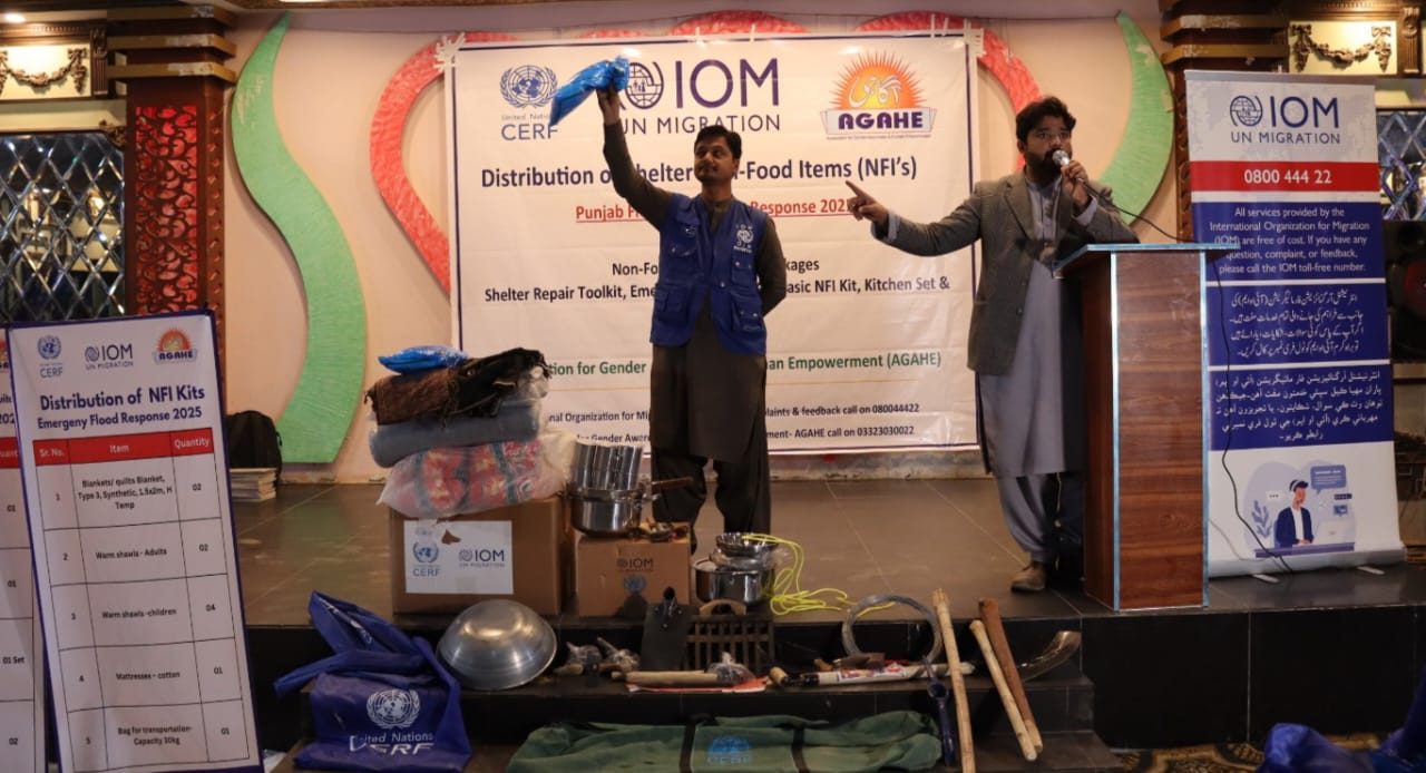AGAHE, with support from the International Organization for Migration (IOM), implemented humanitarian assistance in Jalalpur Pirwala and Shujaabad to help flood-affected families recover and rebuild. A total of 250 vulnerable households were assisted with NFI packages, including Emergency Shelter Kits, Shelter Repair Toolkits, Basic NFI Kits, Kitchen Sets, and Mosquito Nets. Mr. Tahir, Shelter Engineer and IOM representative, participated in the distribution ceremony. The intervention improved shelter conditions, supported early recovery, and helped restore dignity and safety for affected communities, reinforcing AGAHE’s commitment to collaborative rehabilitation efforts.