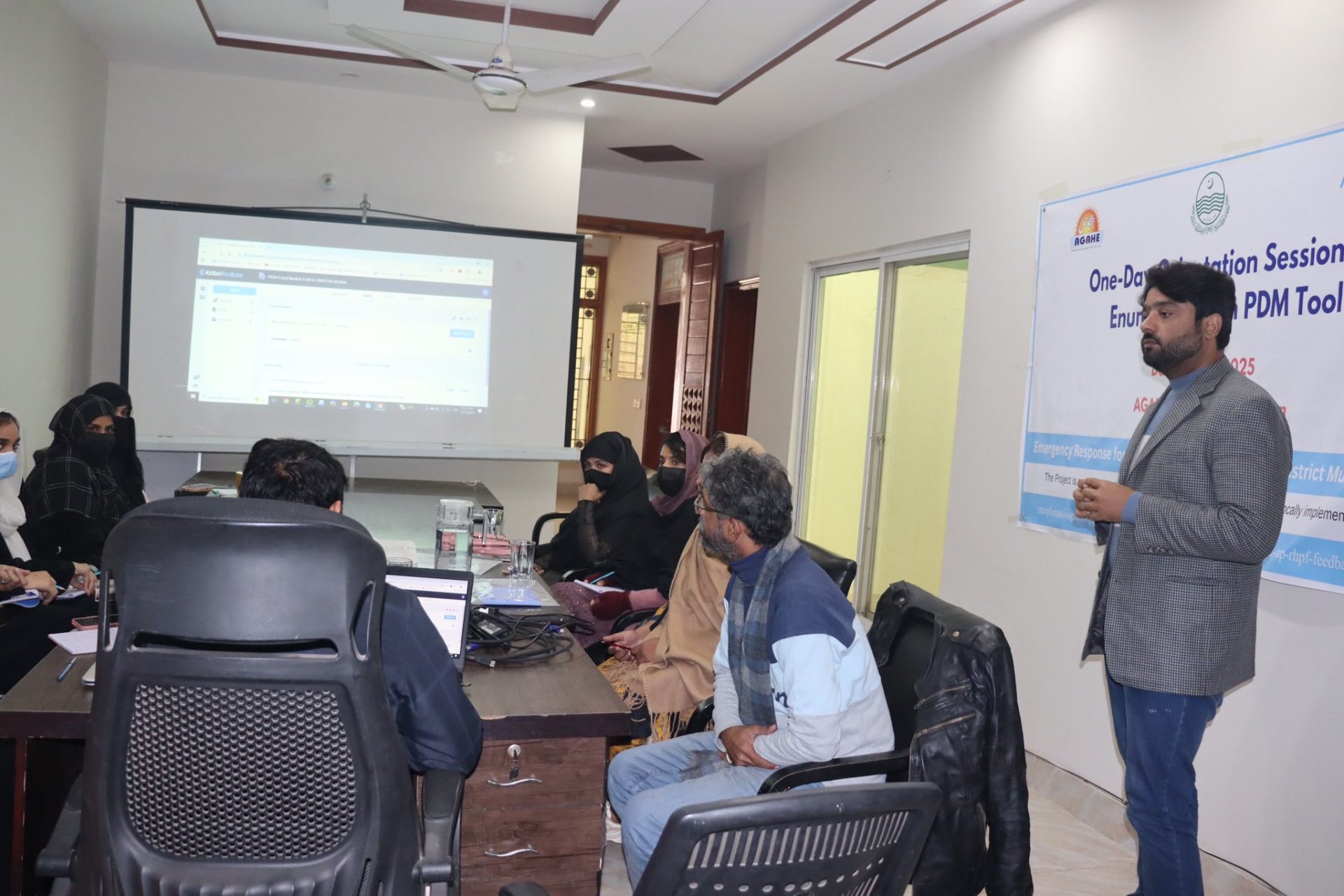AGAHE organized an orientation session at project office Multan for enumerators and project staff under the financial support of APHF, focusing on Post Distribution Monitoring (PDM). The session also facilitated by Mr. Umer Dil District Coordinator UNOCHA and Mr. Muhammad Iqbal Deputy Director Social Welfare Department. The orientation aimed to provide enumerators with a comprehensive understanding of the PDM tool and to equip them with the practical skills required to collect quality data in the field in line with the tool’s requirements.