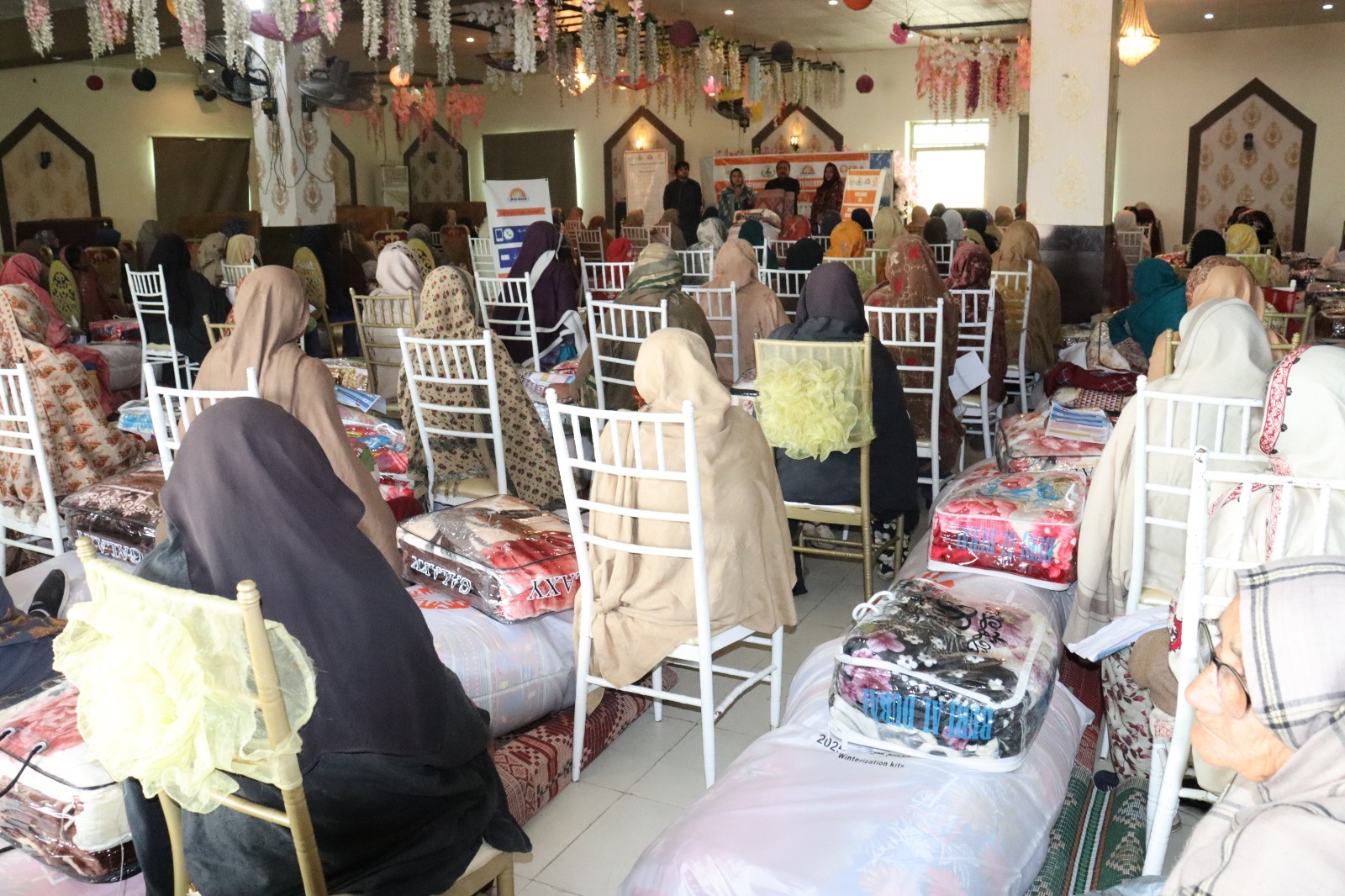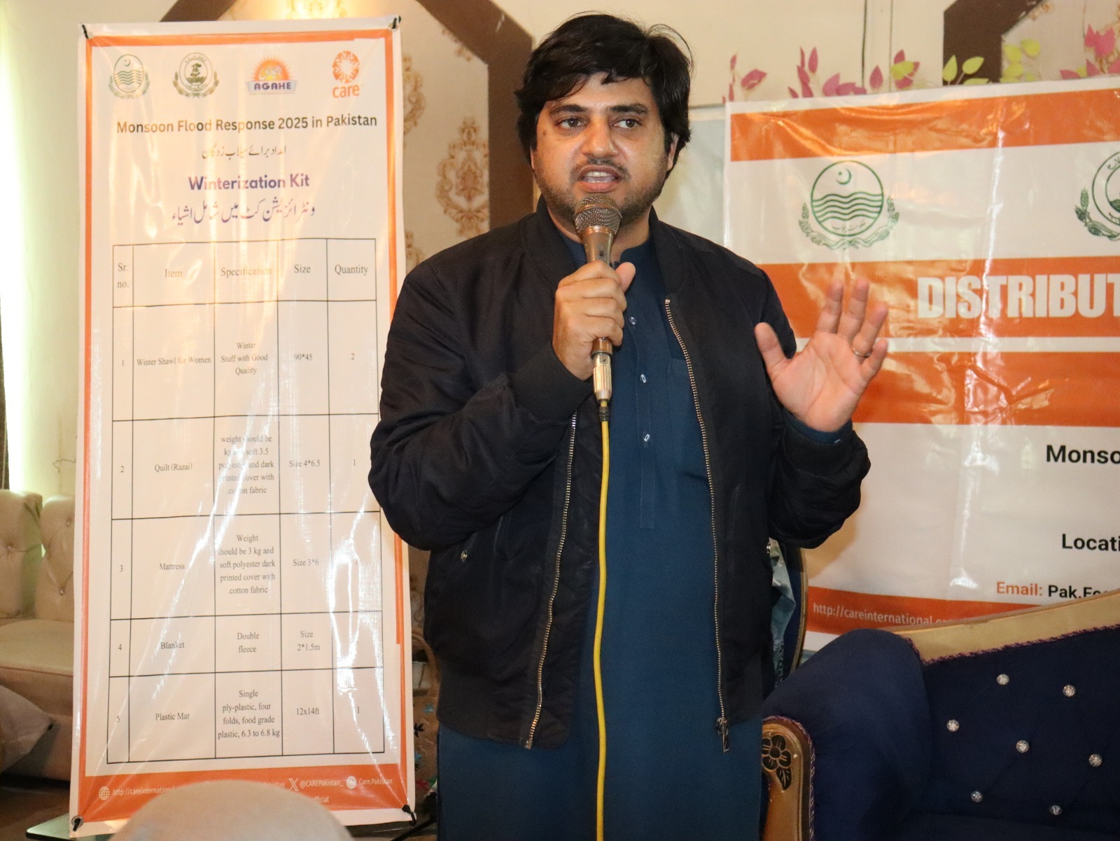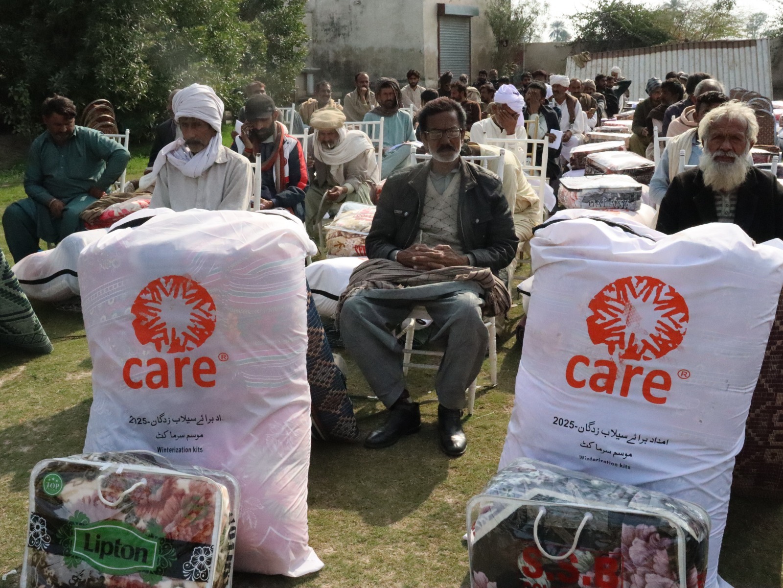 On February 06, AGAHE, with the support of CARE International, distributed winterization kits to 300 flood affected families in UC Ratta Matta at Al Hadeeqa Marriage Hall, Tehsil and District Jhang. The kits included essential winter items to help vulnerable households cope with cold weather conditions. Representatives from the Social Welfare Department and Bait ul Mal attended the activity and appreciated the efforts of the project team.