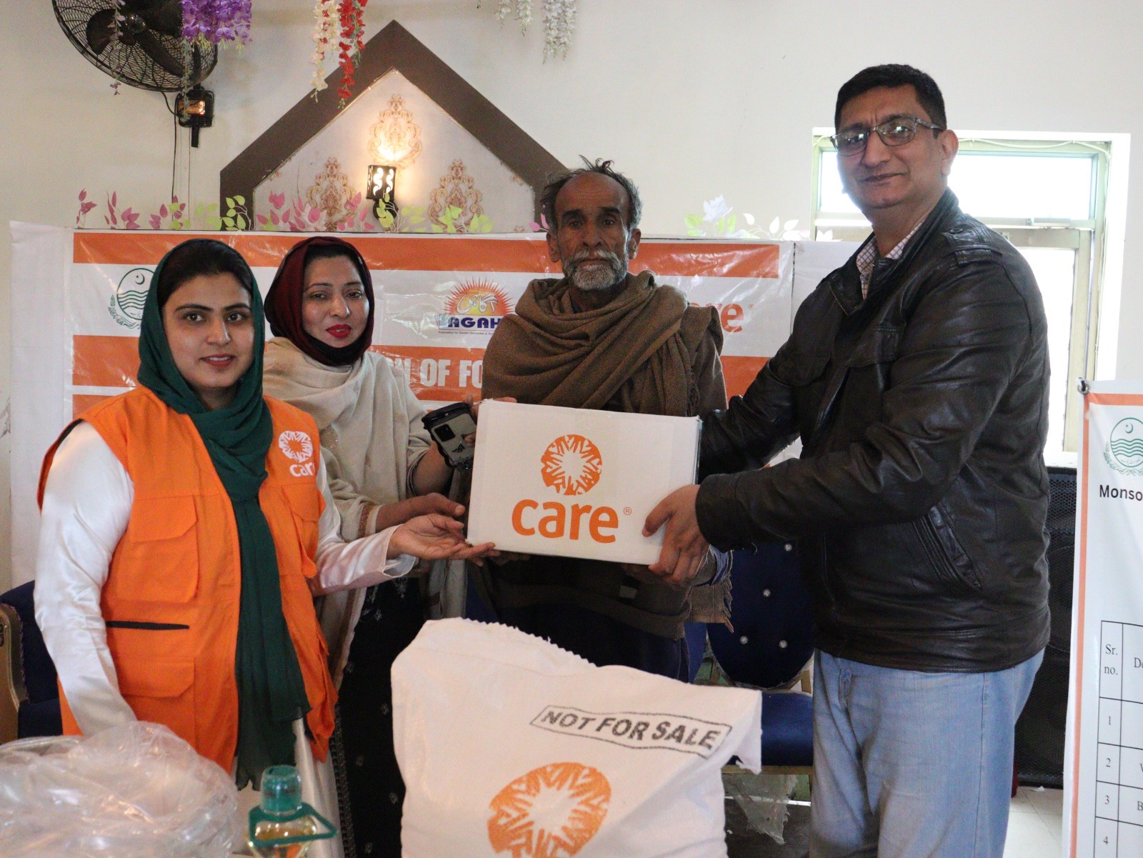 On February 07, 2026, AGAHE, with the support of CARE International, distributed food kits to 150 vulnerable flood affected families in UC Ratta Matta at Al Hadeeqa Marriage Hall, Tehsil and District Jhang. Each food kit provided essential nutrition for families during the winter recovery period, helping reduce hunger related health risks and easing household financial pressure. The activity contributed to improved community wellbeing through coordinated humanitarian support.