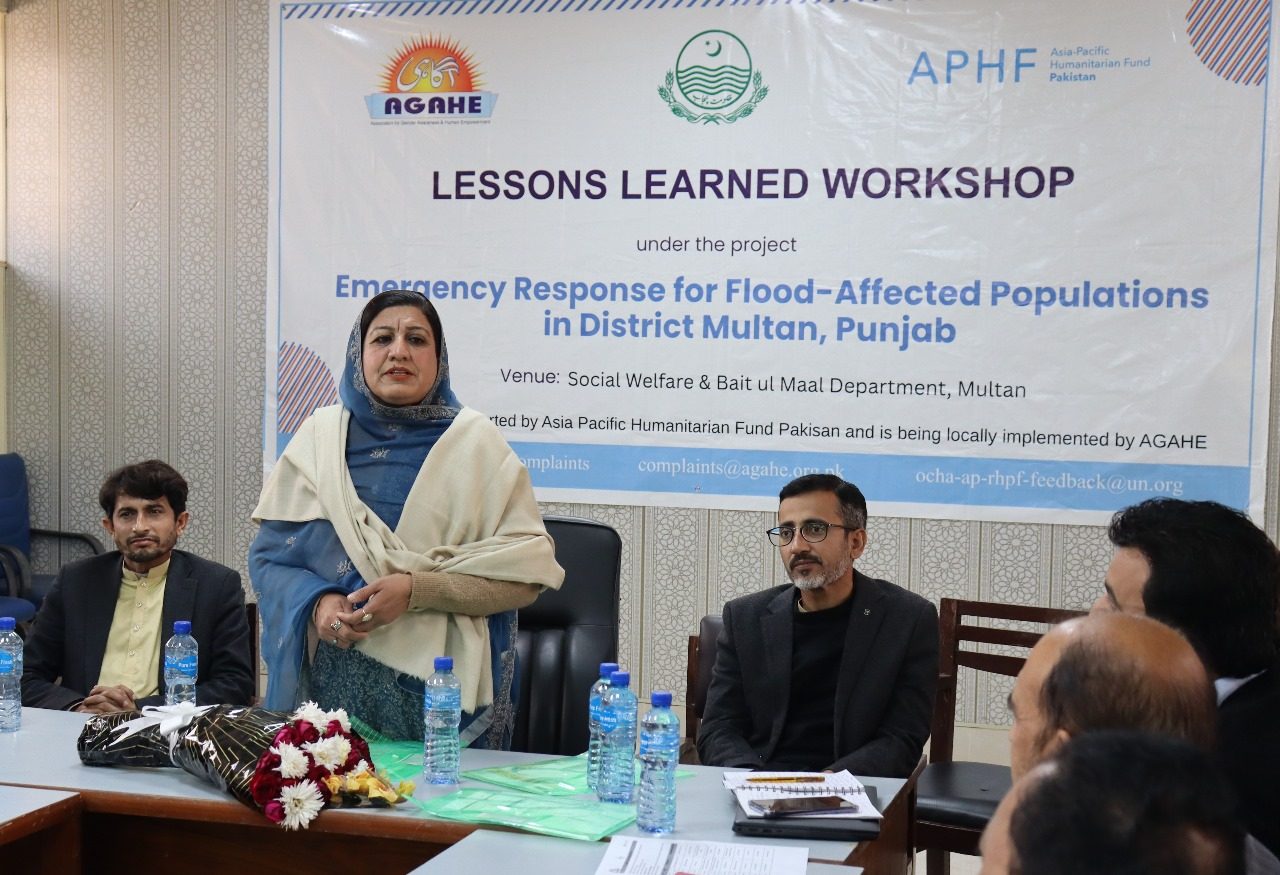 On Dated January 01, 2026, AGAHE organized a Lessons Learned Workshop in Multan at the offices of Social Welfare and Bait-ul-Maal to mark the successful completion of the project “Emergency Flood Response for Flood-Affected Population in District Multan.