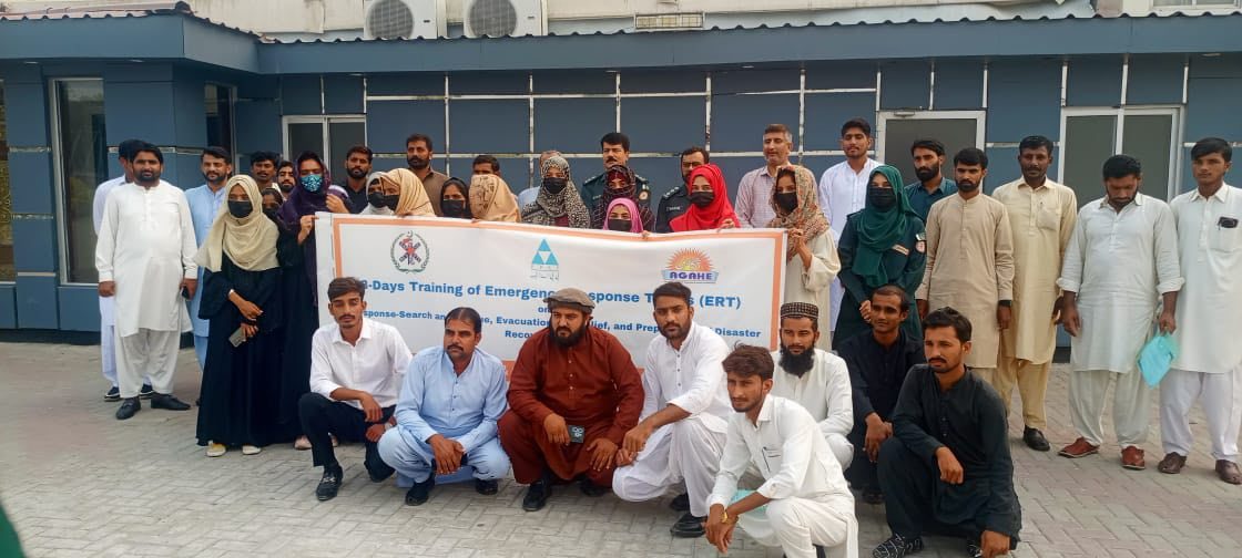 AGAHE, with the support of the Pakistan Poverty Alleviation Fund (PPAF) under the project Restoring Social Services and Climate Resilience, organized a three-day Emergency Response (ER) Training for 30 ER members (18 male, 12 female) from UC Attari and UC Rohela, Tehsil Depalpur, District Okara, in collaboration with Rescue 1122.