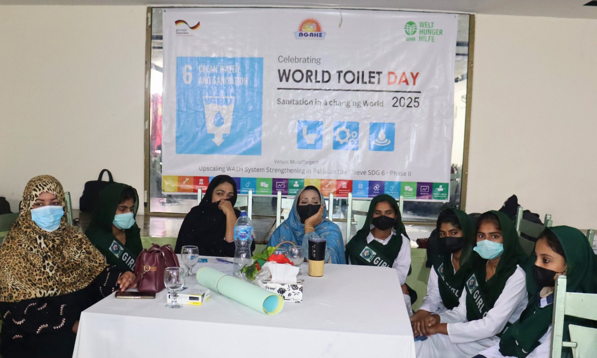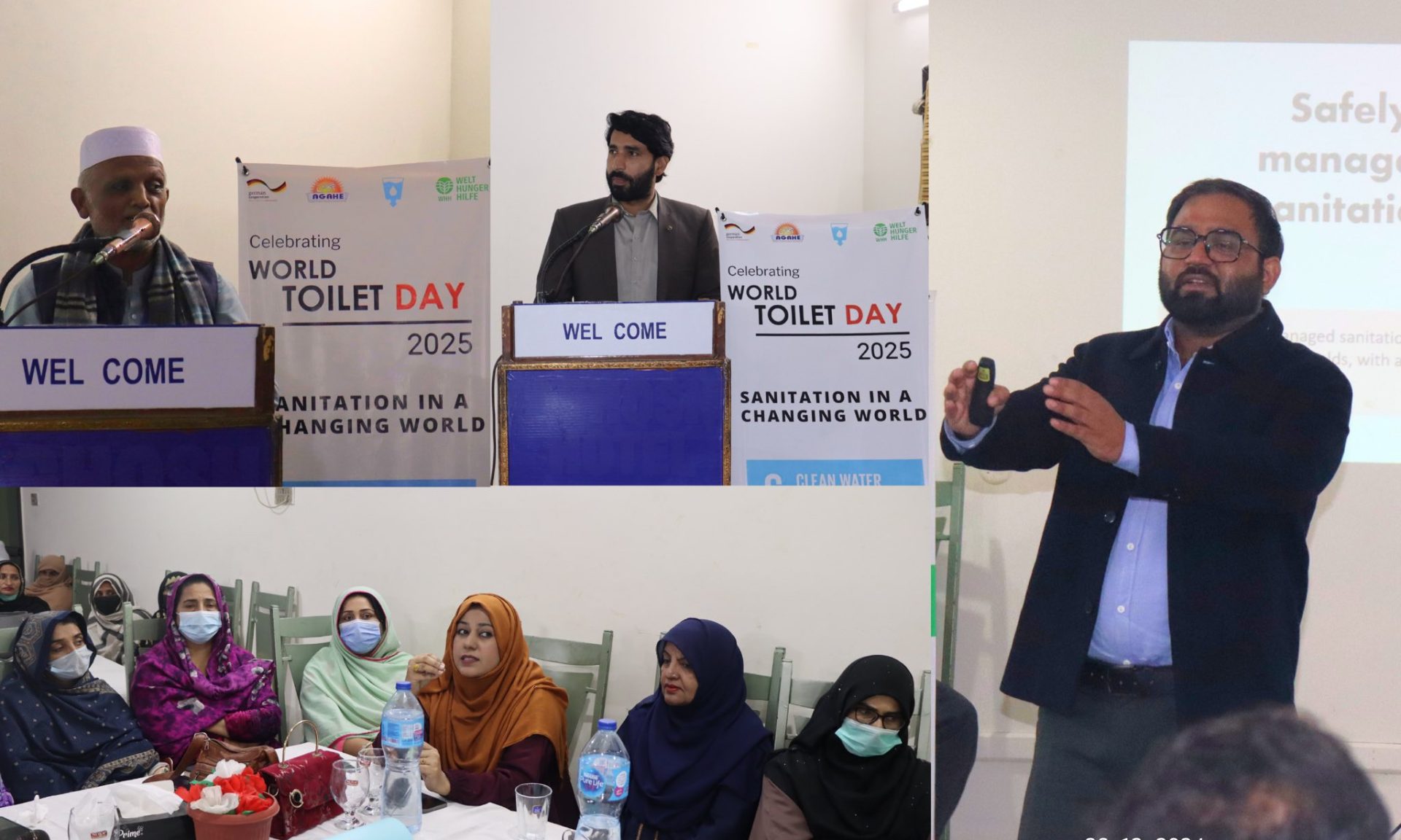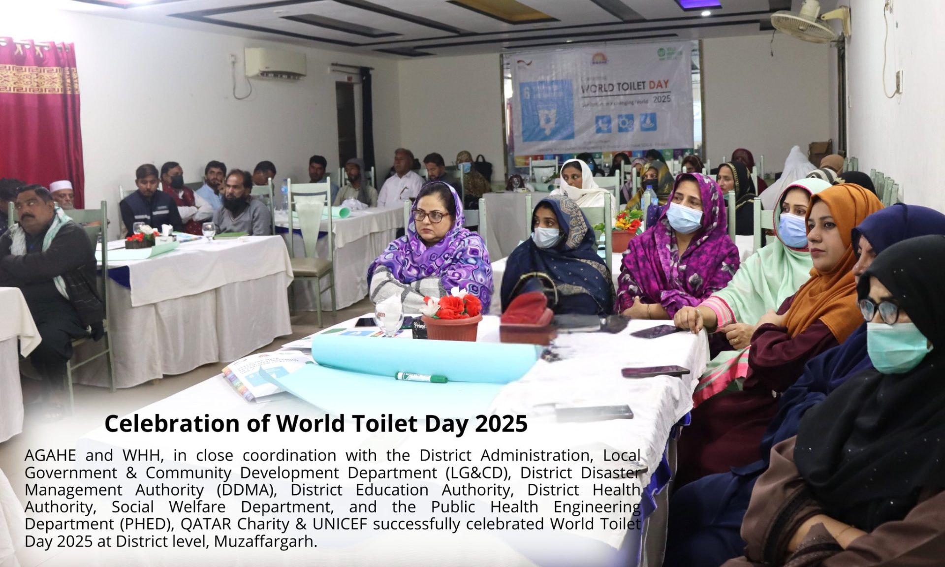 AGAHE and WHH, in close coordination with the District Administration, Local Government & Community Development Department (LG&CD), District Disaster Management Authority (DDMA), District Education Authority, District Health Authority, Social Welfare Department, and the Public Health Engineering Department (PHED), successfully celebrated World Toilet Day 2025. The purpose of the celebration was not only to raise awareness on safely managed sanitation and the use of improved sanitation facilities, but also to provide a unified platform for government departments and NGOs to jointly discuss priorities and strategize towards the achievement of SDG 6—Clean Water and Sanitation for All. UNICEF and Qatar Charity also participated by presenting their ongoing interventions on safe sanitation, particularly in flood-affected areas.