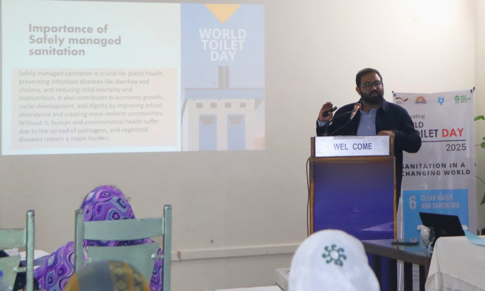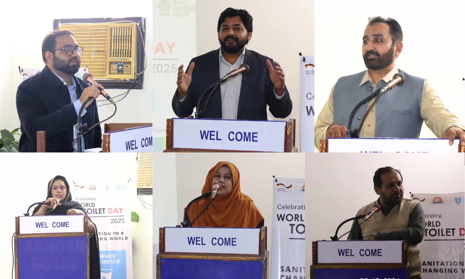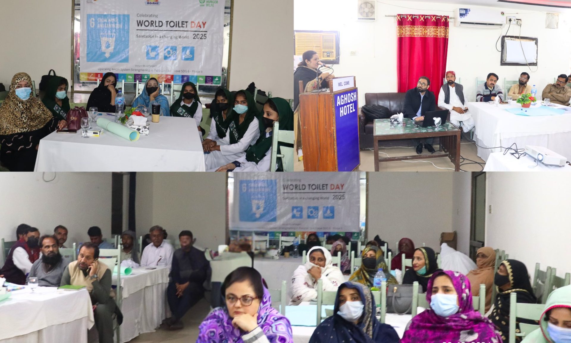 AGAHE and WHH, in close coordination with the District Administration, Local Government & Community Development Department (LG&CD), District Disaster Management Authority (DDMA), District Education Authority, District Health Authority, Social Welfare Department, and the Public Health Engineering Department (PHED), successfully celebrated World Toilet Day 2025. The purpose of the celebration was not only to raise awareness on safely managed sanitation and the use of improved sanitation facilities, but also to provide a unified platform for government departments and NGOs to jointly discuss priorities and strategize towards the achievement of SDG 6—Clean Water and Sanitation for All. UNICEF and Qatar Charity also participated by presenting their ongoing interventions on safe sanitation, particularly in flood-affected areas.